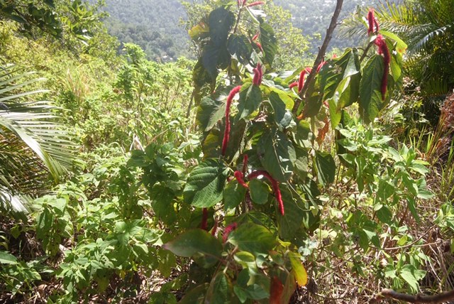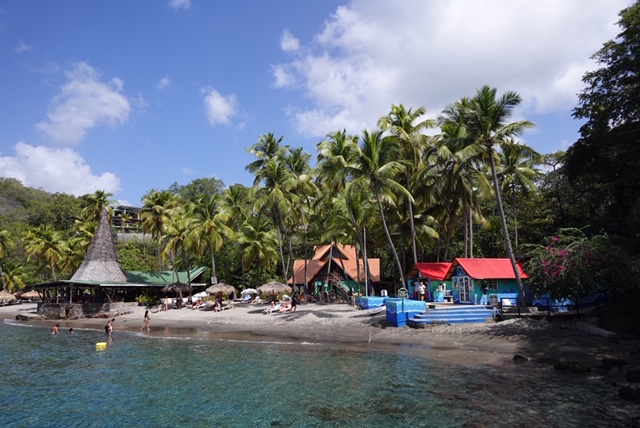 This, the Grand Piton, is the one we cannot see from where we are staying. People can hire a guide from the village (on the left in this view) to hike up and down, an excursion that takes 4 to 8 hours, depending on the people going.
