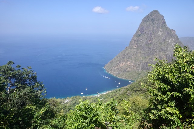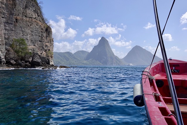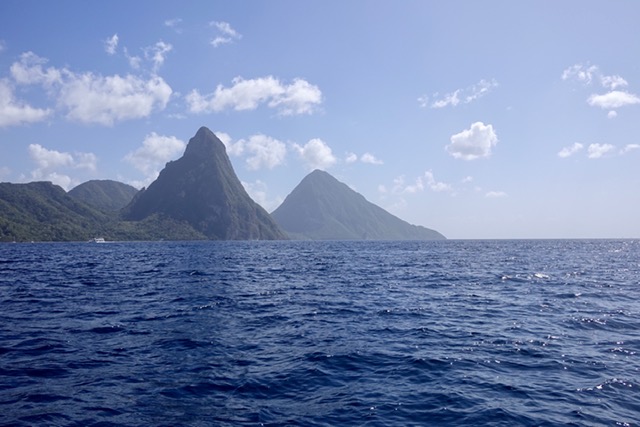 On the way back on our Sea Breeze motorboat, we could see both pitons at the same time (impossible the previous day on our walks).