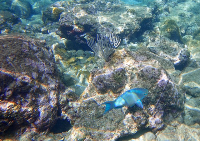 Every color of fish, and interesting coral, too! Parrotfish.
