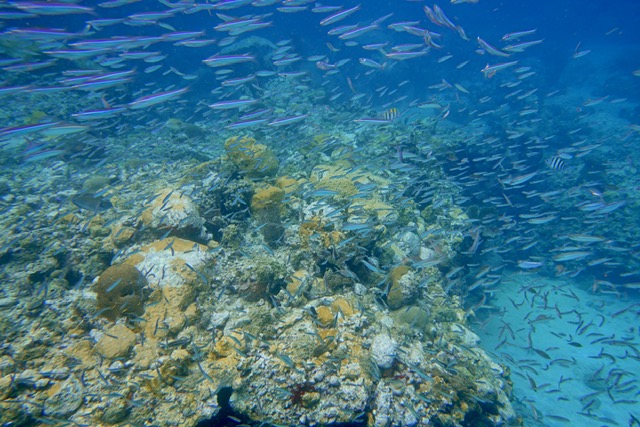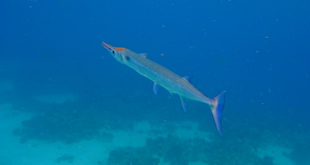 We swam for almost an hour, going deeper to see bigger fish, then coming back shallower. This could be a Barracuda.