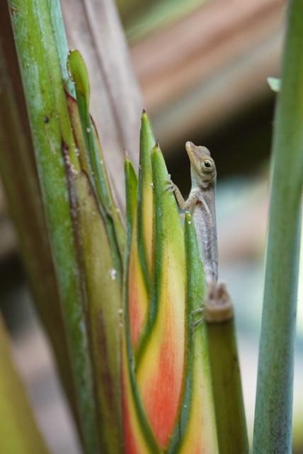 Lizard checking out a flower.