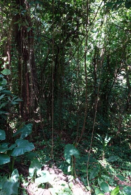 Beautiful vines hang in the dense forest.