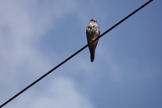 A hawk-like bird on a wire.
