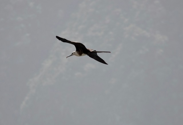 Female Frigatebird in flight. Some of these birds migrate from Africa in the summer.