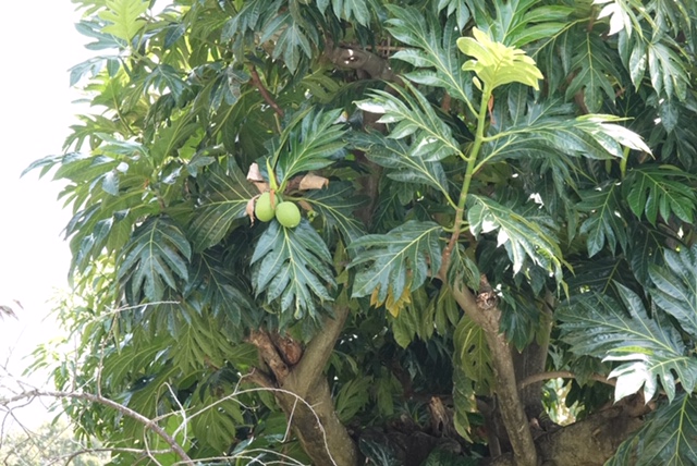 These interesting pods hang from a palm tree. Clare wondered if they were inspiration for some of the women’s hairstyles on this island.