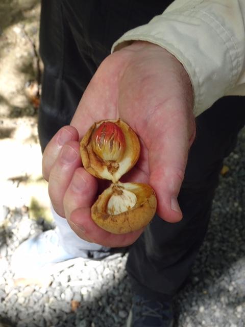 Nutmeg is the seed in a fruit that looks like a peach.