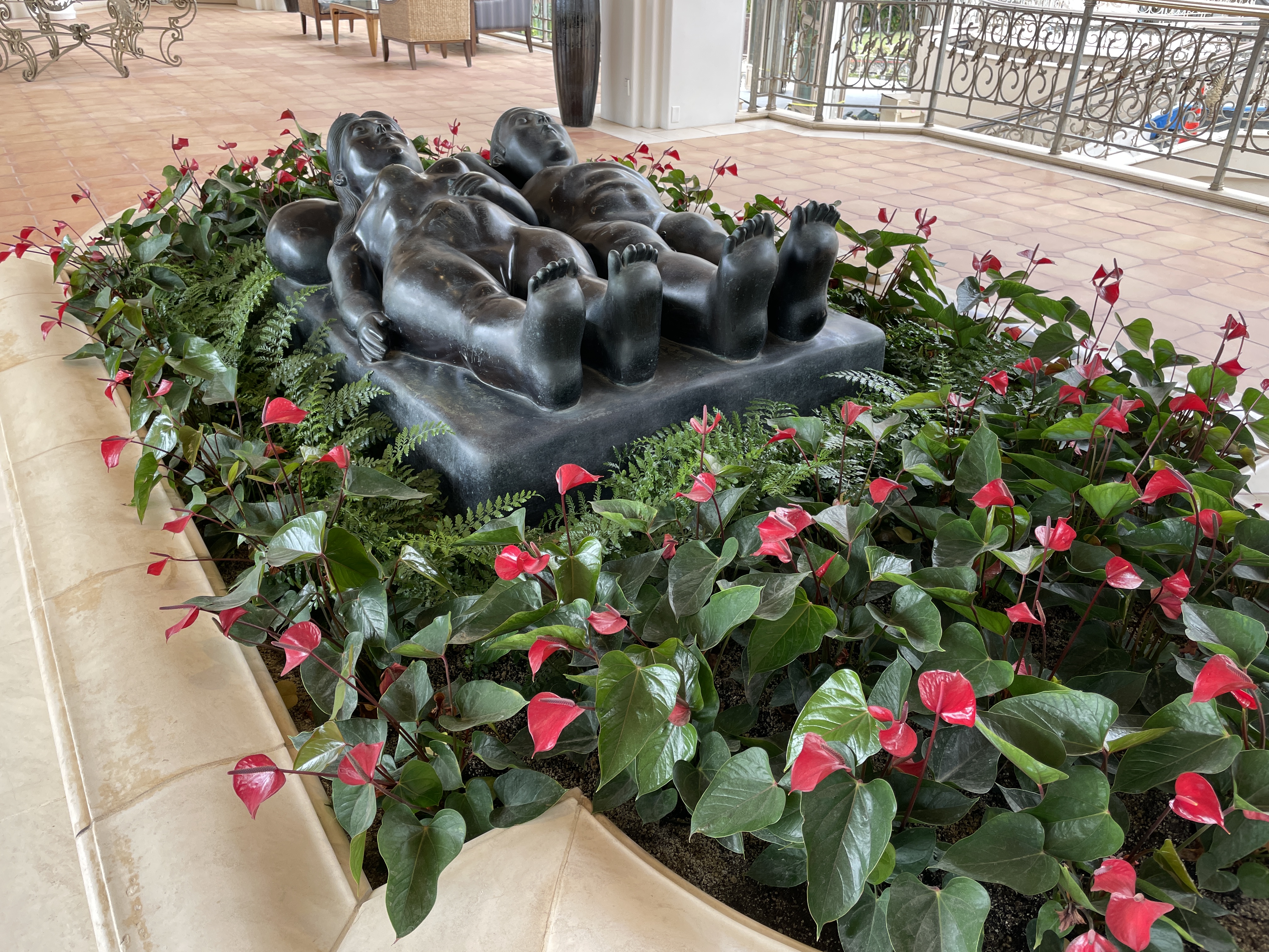 Nice pictures of the primary characters in this blog, with another showing how high we got! While the temperatures down at the beaches were in the 80s, up here at the summit it was in the 40s with wind and occasional drizzle. Clare was glad she brought her hiking poles, because they were handy on the trails at the top. We were both glad for our jackets.
